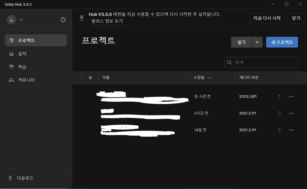 설치가 다 되셨다면 유니티를 시작할 준비가 끝났습니다. 다시 프로젝트로 돌아옵시다.