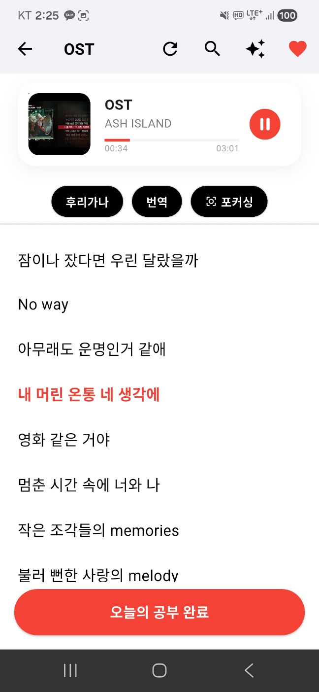 이렇게 만들어 주는게 아닌가 너무 예쁘게 잘 만들어줬다. 그래서 가사를 볼땐 이 화면을 많이 따라하려 했다.