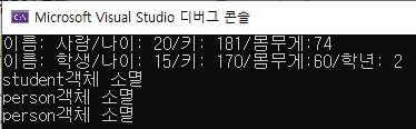 소멸자 호출순서가 학생 다음으로 person이 나옵니다. 근데 person이 두번 소멸되었죠?