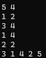 둘째 줄부터 M개의 줄에 걸쳐서 공을 교환할 방법이 주어진다. 각 방법은 두 정수 i j로 이루어져 있으며, i번 바구니와 j번 바구니에 들어있는 공을 교환한다는 뜻이다. (1 ≤ i ≤ j ≤ N)