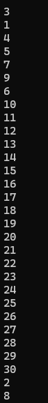 입력은 총 28줄로 각 제출자(학생)의 출석번호 n(1 ≤ n ≤ 30)가 한 줄에 하나씩 주어진다. 출석번호에 중복은 없다.