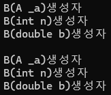 B(double d) { cout << "B(double b)생성자" << endl; }*/