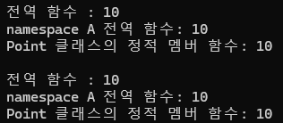Point::Print(10); //Point 클래스의 정적 멤버 함수